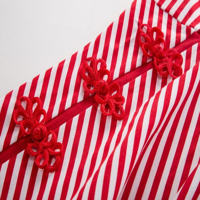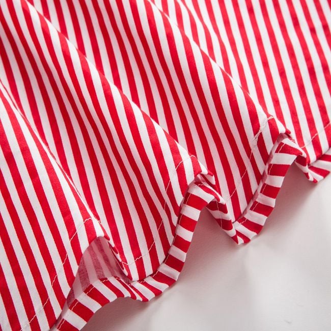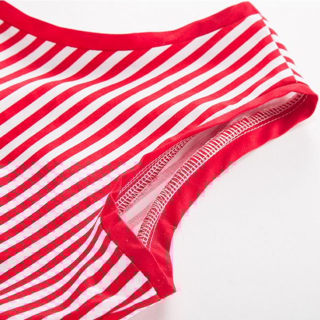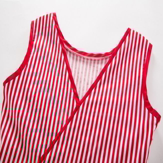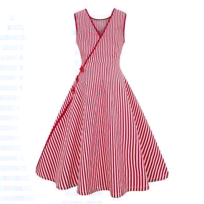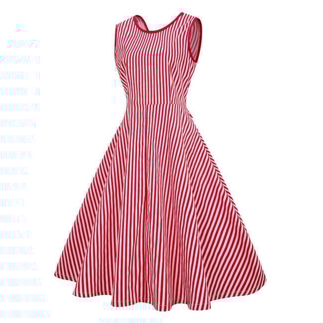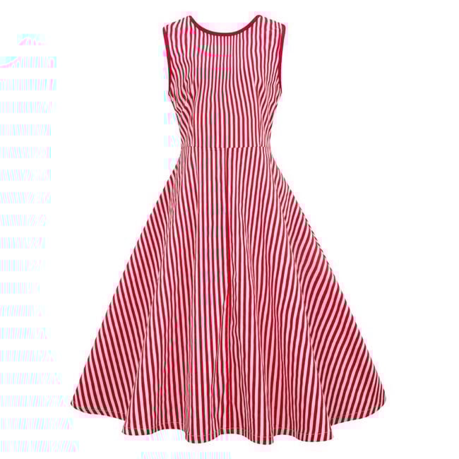Il vestito ha una gonna a forma di A e spalline larghe.