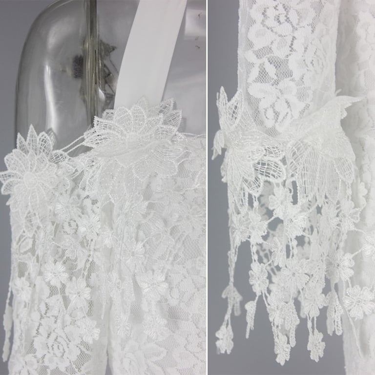Abito da donna di lusso in pizzo di un brillante colore bianco.