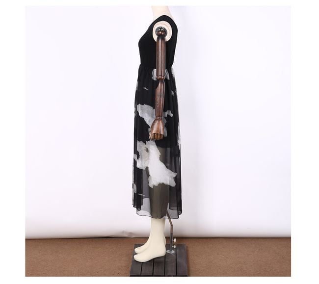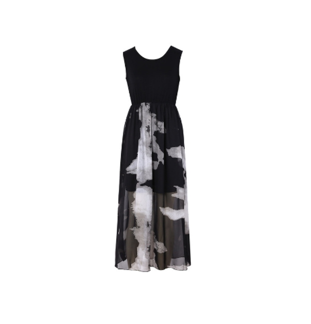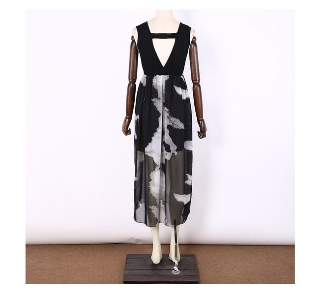 Il vestito è molto elegante ed è adatto come accessorio per l'uso quotidiano. Ha una gonna a due pezzi, una parte è opaca e arriva circa a metà coscia, mentre l'altra parte trasparente è circa sopra le caviglie.