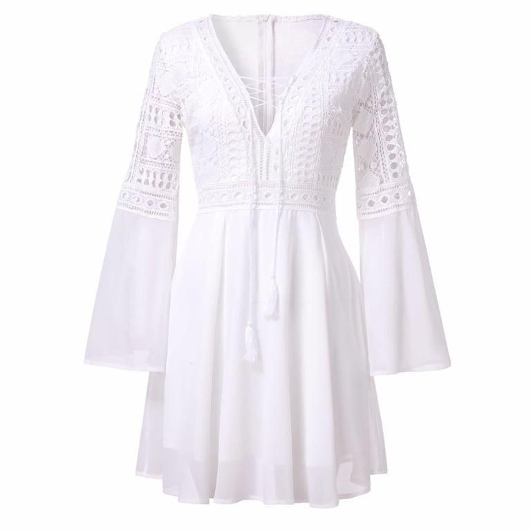 Bellissimo abito mini bianco in pizzo in stile boho.