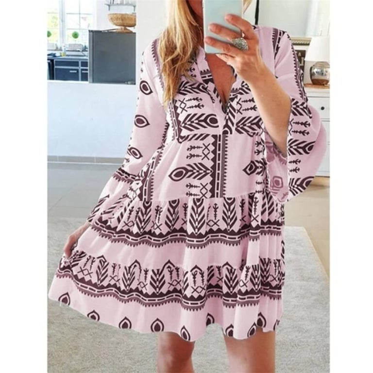 Abito estivo boho con scollatura a V e maniche a tre quarti Becky