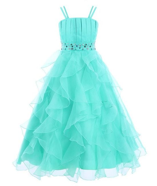 Gli abiti sono monocolore, hanno una bellissima gonna arricciata con volant e una cintura decorata con pietre luccicanti. Sono adatti per feste, eventi sociali o ad esempio per un matrimonio.