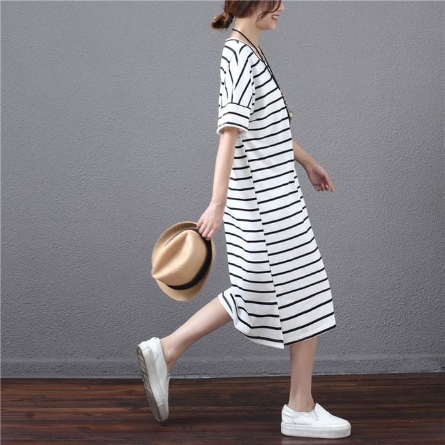 Il vestito a righe libero sarà un pezzo estivo comodo! Le misure indicate sono quelle del prodotto, non del corpo.