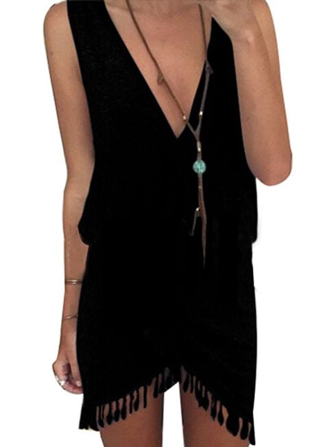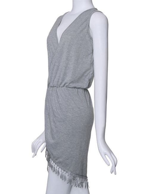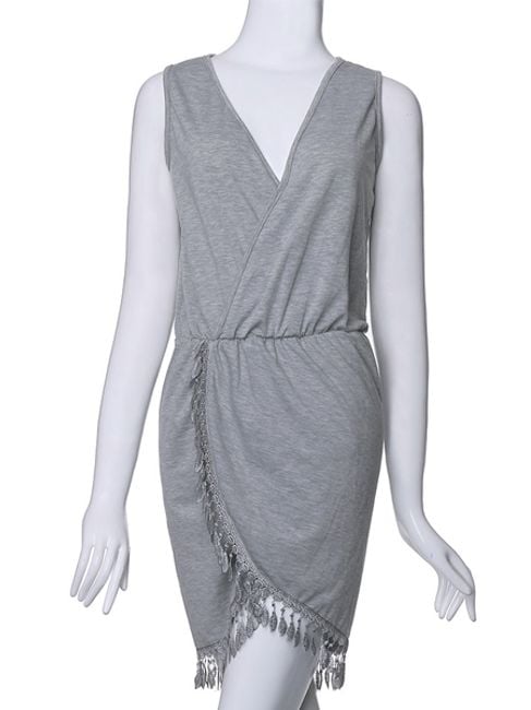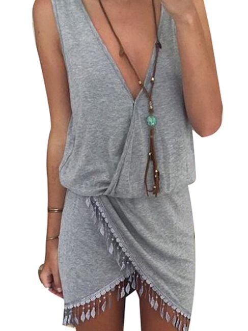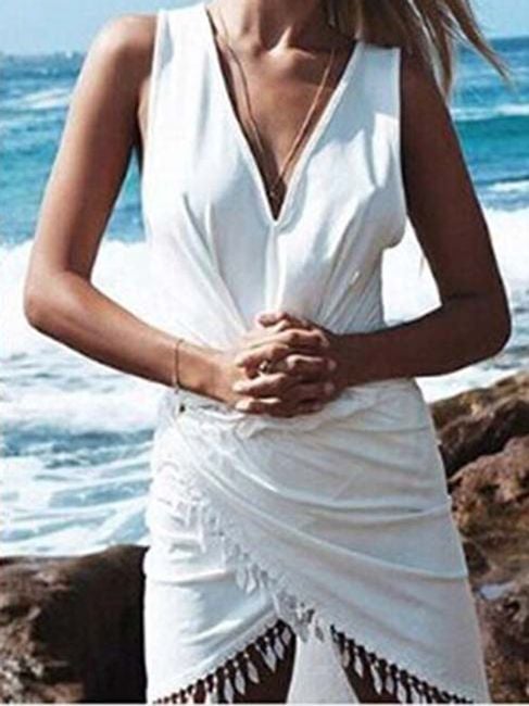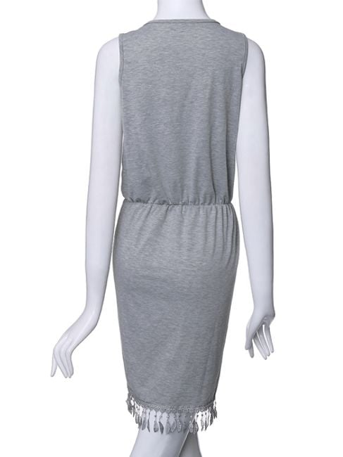 Il vestito casual da donna ti farà piacere. La parte inferiore del vestito è decorata con piccoli ornamenti che evocano un'impressione fresca. In vita, il vestito è stretto. Puoi scegliere tra diversi colori.