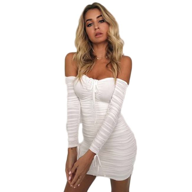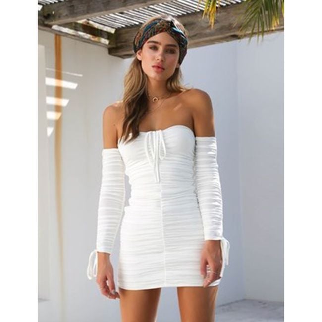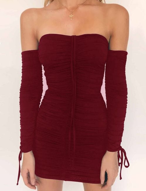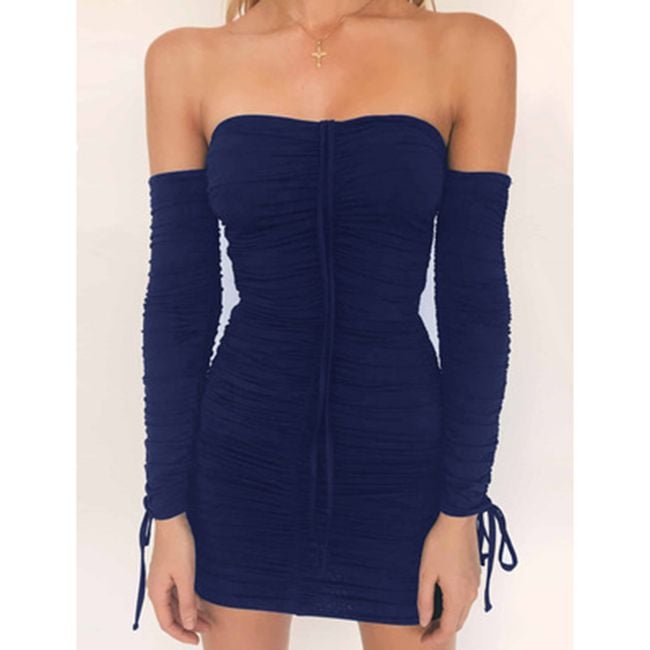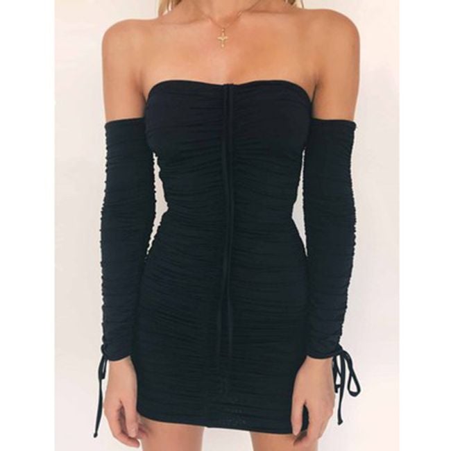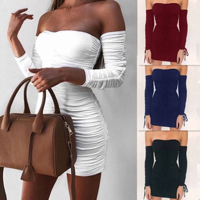 Abito elegante da donna con maniche scese e senza spalline. Disponibile in 4 varianti di colore.