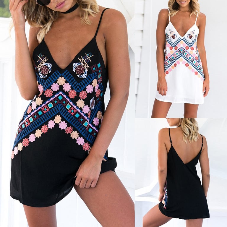 Abiti da donna con motivi e spalline a spaghetti. Ideali per il costume da bagno quando vai in vacanza al mare. Colori disponibili – bianco e nero.