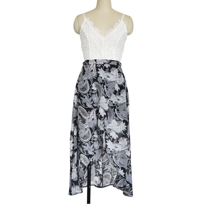 Bellissimi vestiti sono ideali per le vacanze grazie al materiale leggero. Il vestito è decorato con spalline incrociate sul retro e pizzo. La gonna leggera ha uno spacco che mette in risalto le gambe abbronzate. Le taglie possono essere trovate nella descrizione dettagliata del prodotto. Puoi scegliere tra 8 varianti di colore.