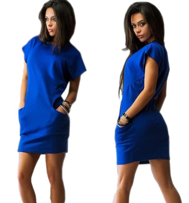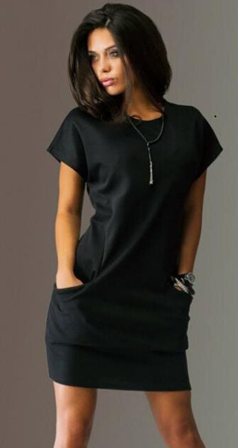 Il vestito ha maniche corte e dispone di tasche. È mini e disponibile in 3 colori.