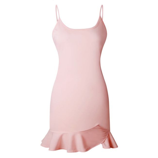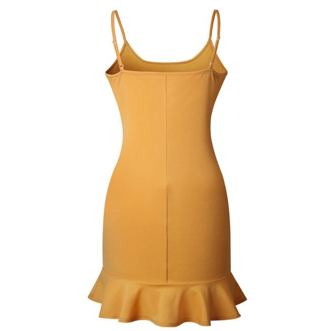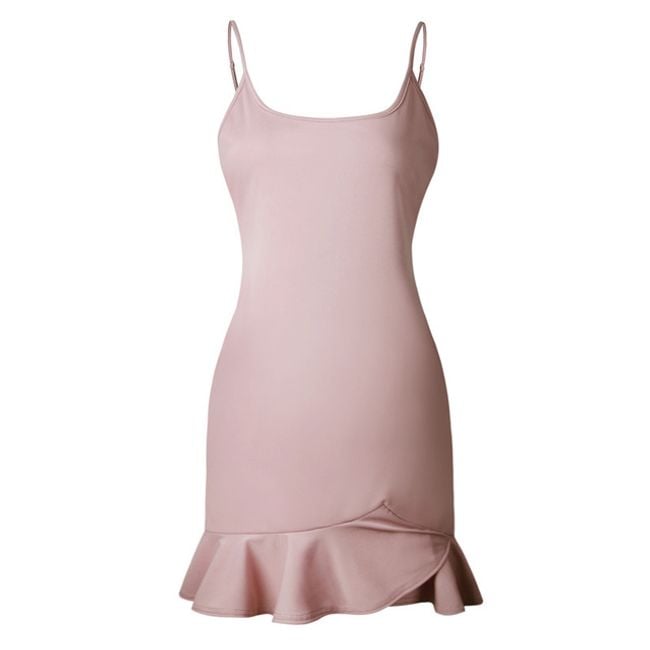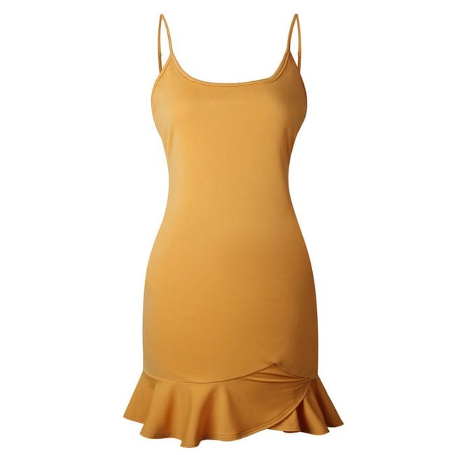 Gli abiti aderenti da donna hanno spalline sottili e sono rifiniti con volant stilosi. Sono disponibili in 6 varianti di colore.