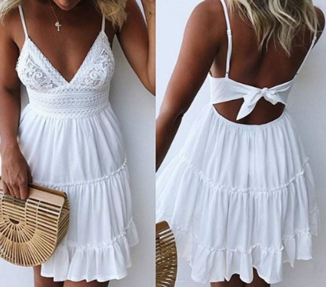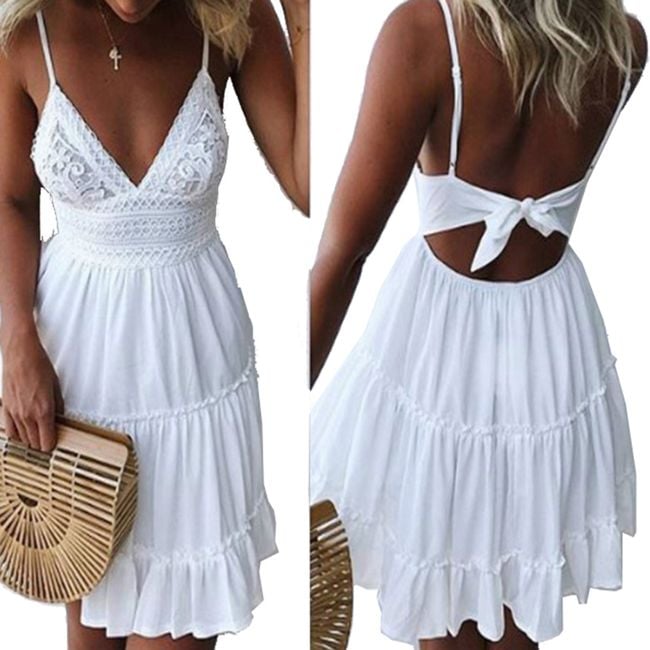 Abito da donna di taglio ampio con scollatura profonda e spalline sottili. Disponibile in 4 varianti di colore.