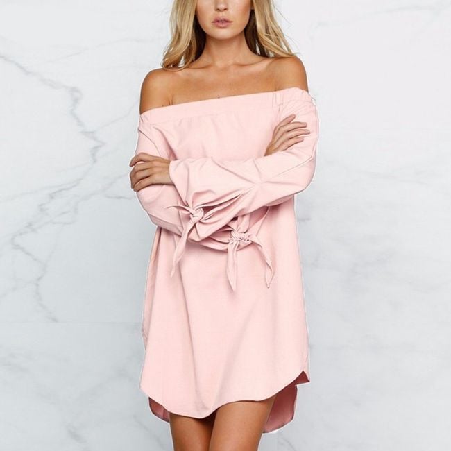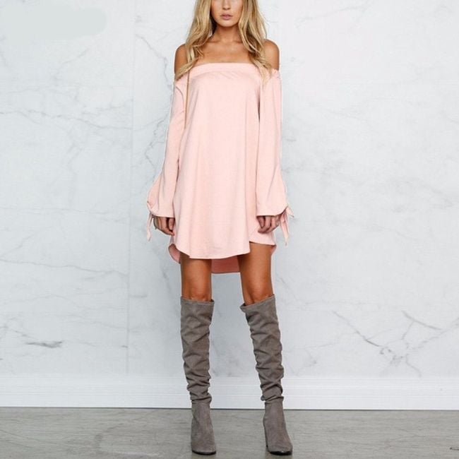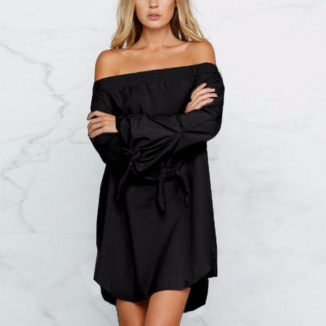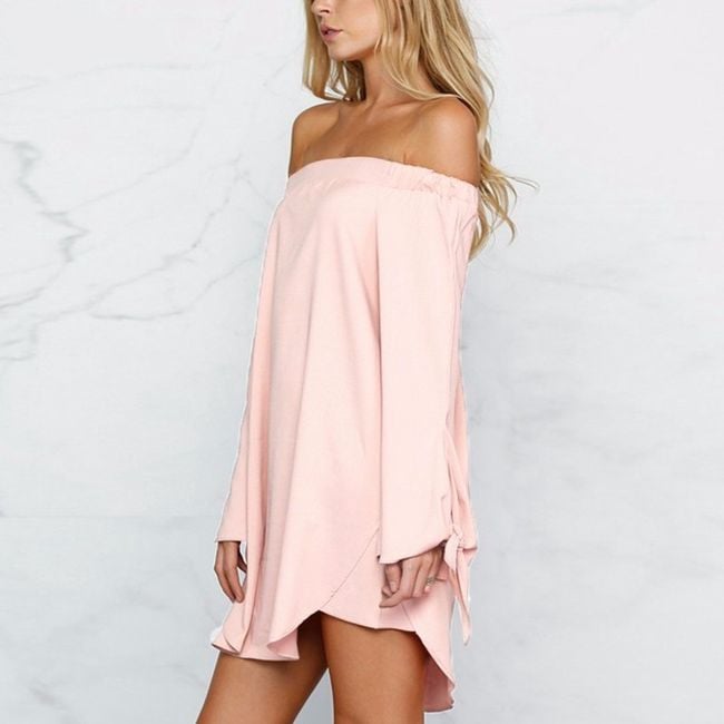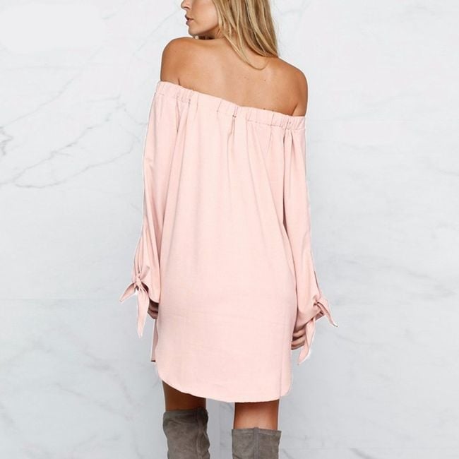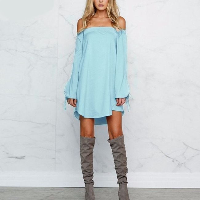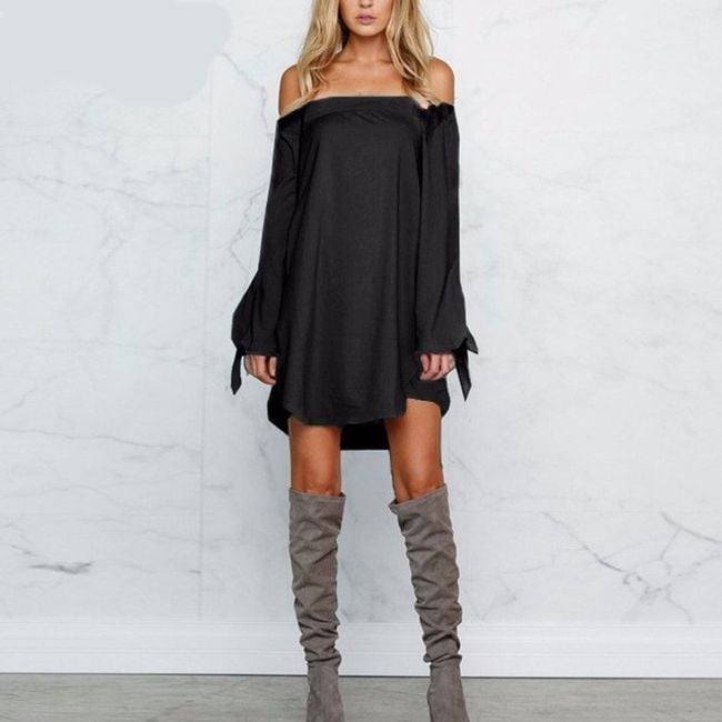 Abito mini da donna con maniche lunghe, di taglio morbido e senza spalline. Sono disponibili 3 colori tra cui scegliere.