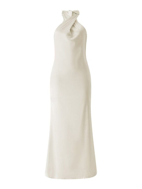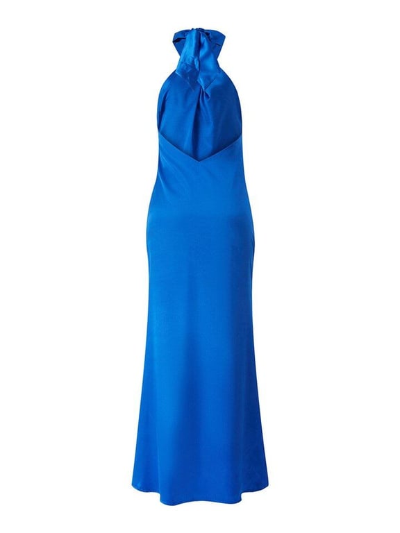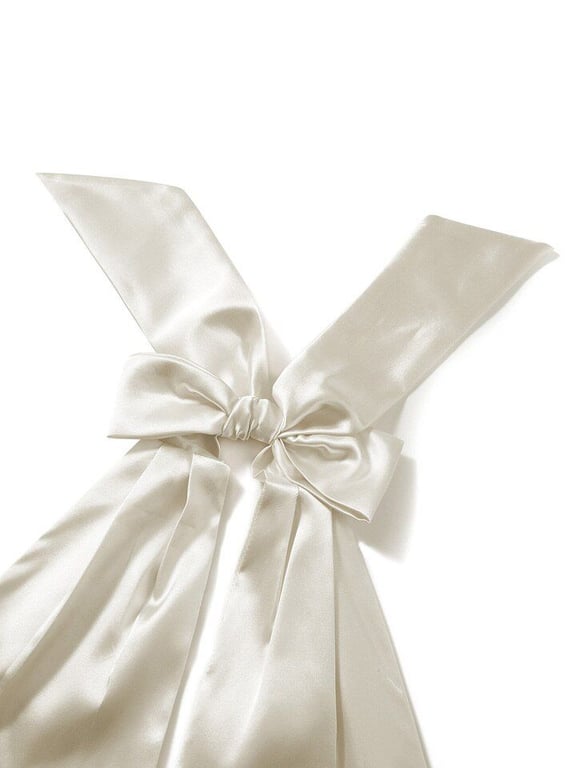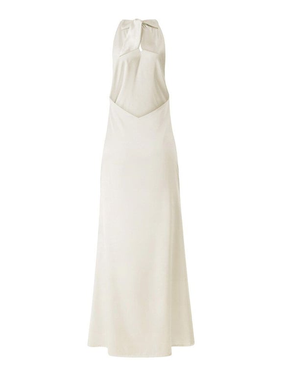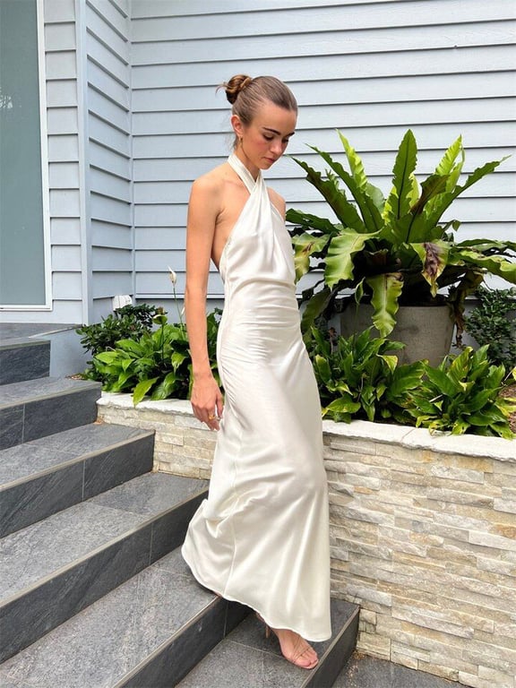 Abito moderno in raso con legatura dietro il collo.