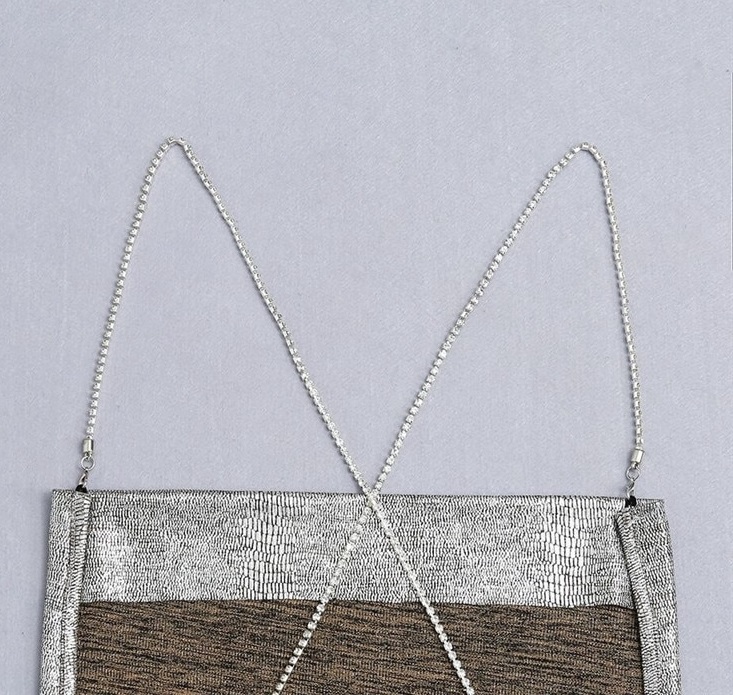 Spalline a catena incrociate sul retro. Schiena seducentemente scoperta.