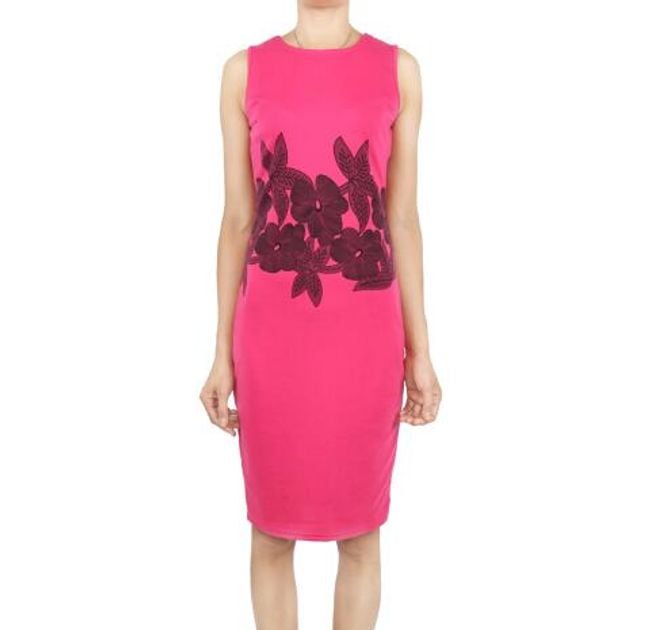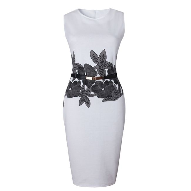 Abito elegante da donna con grande motivo floreale e cintura in vita. Perfetto per il lavoro e per un incontro. Disponibile in 5 varianti di colore.