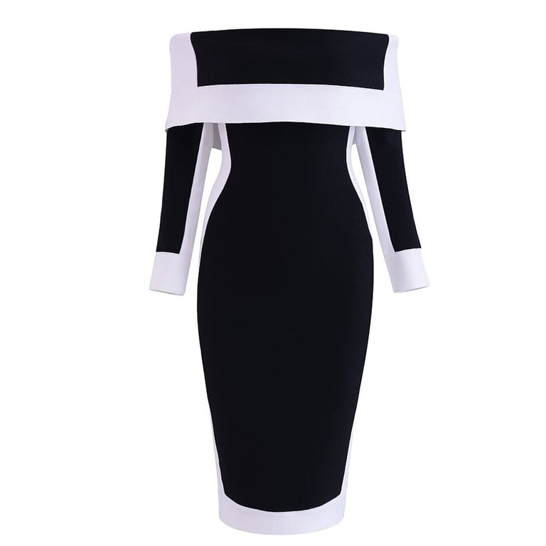 Abito elegante a tubino con spalle scoperte.