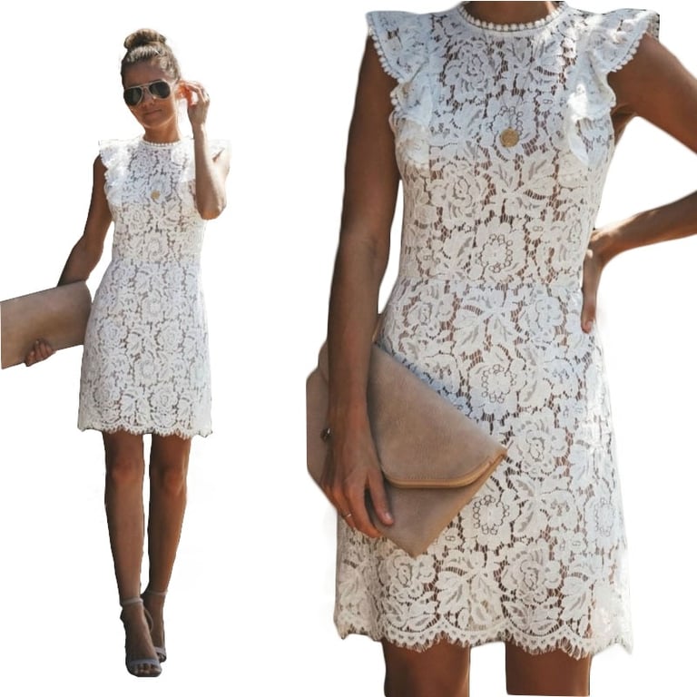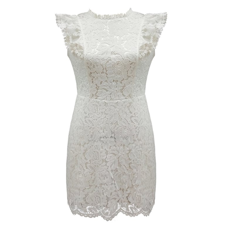 Abito elegante da donna in pizzo sopra il ginocchio con maniche a volant.