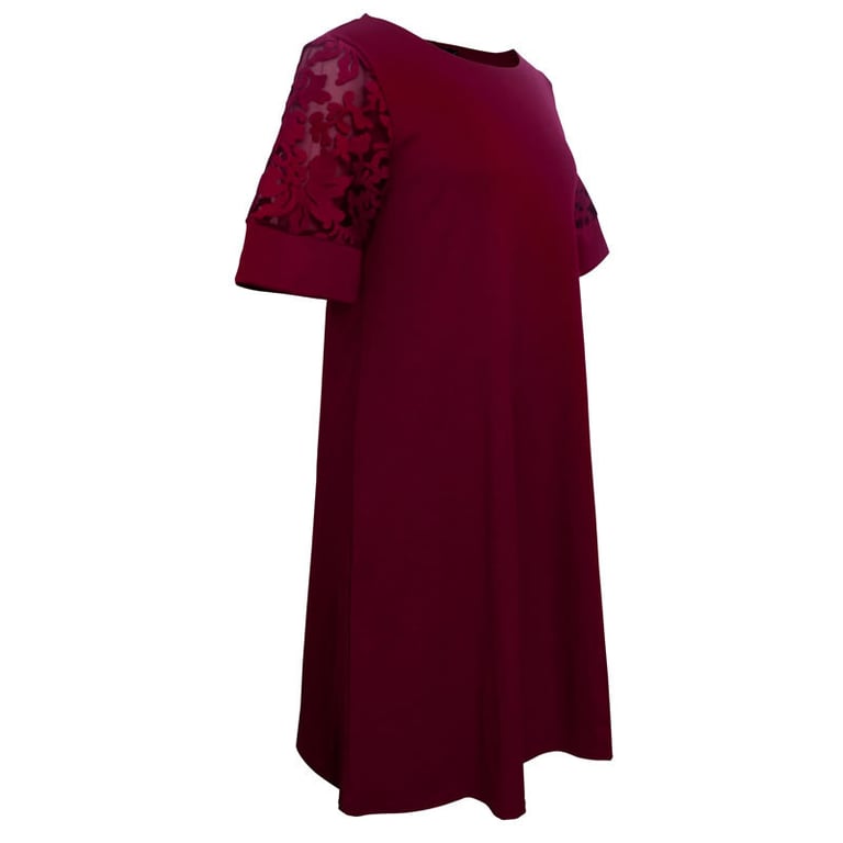 Taglio a A che valorizza e maniche in pizzo.