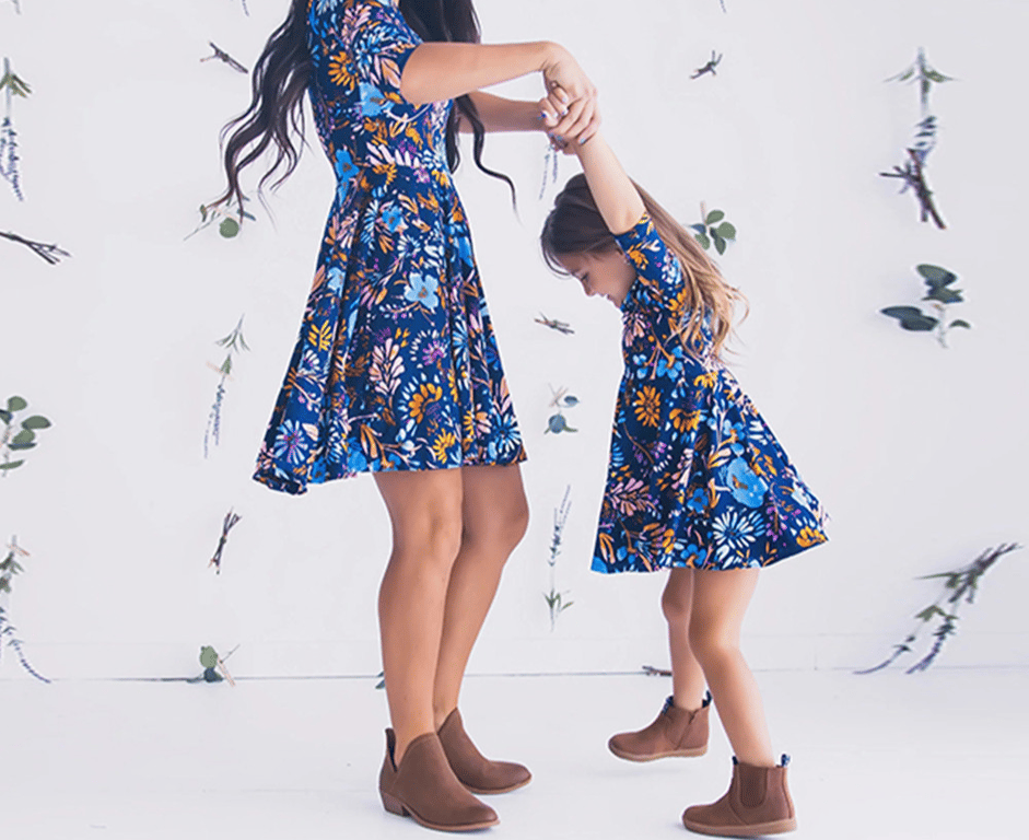 Abiti estivi corti per famiglie con motivo floreale e maniche 3/4