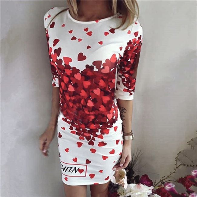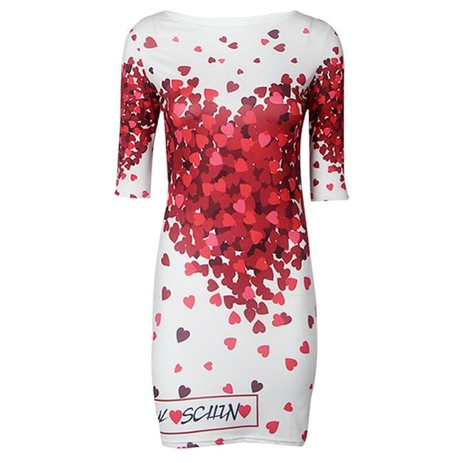 Il vestito da donna è realizzato in un materiale leggero, traspirante e morbido. Il colore bianco è arricchito da cuori rossi. Design originale della stampa e piacevole combinazione di colori, che attirerà molti uomini. Le taglie sono indicate sotto le caratteristiche del prodotto.