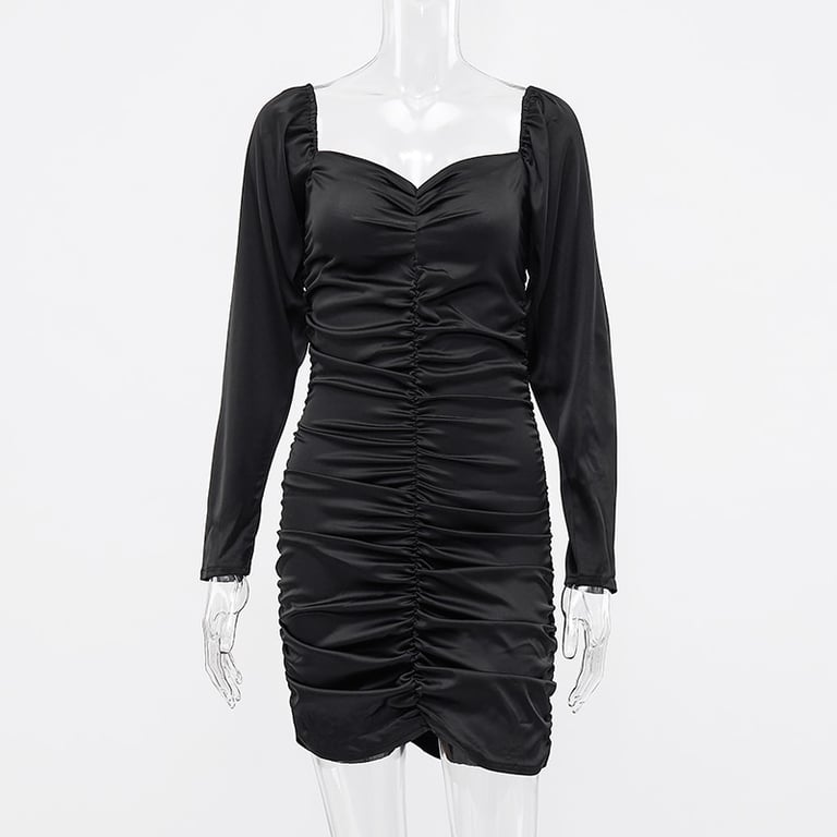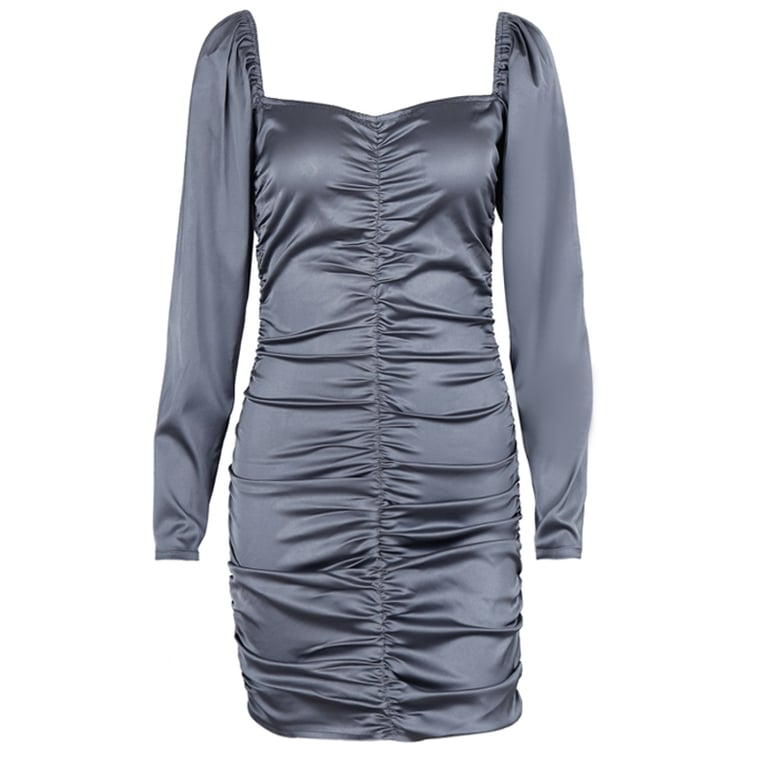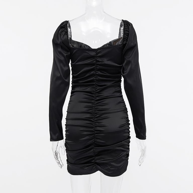 Abito mini lussuoso in materiale lucido e liscio con maniche larghe.