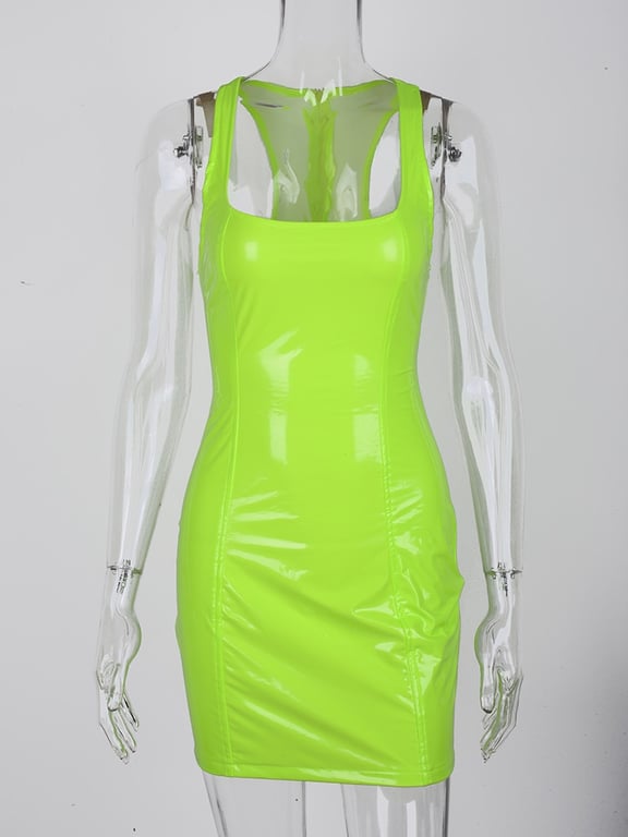 Abito mini sexy da donna in pelle sintetica lucida.