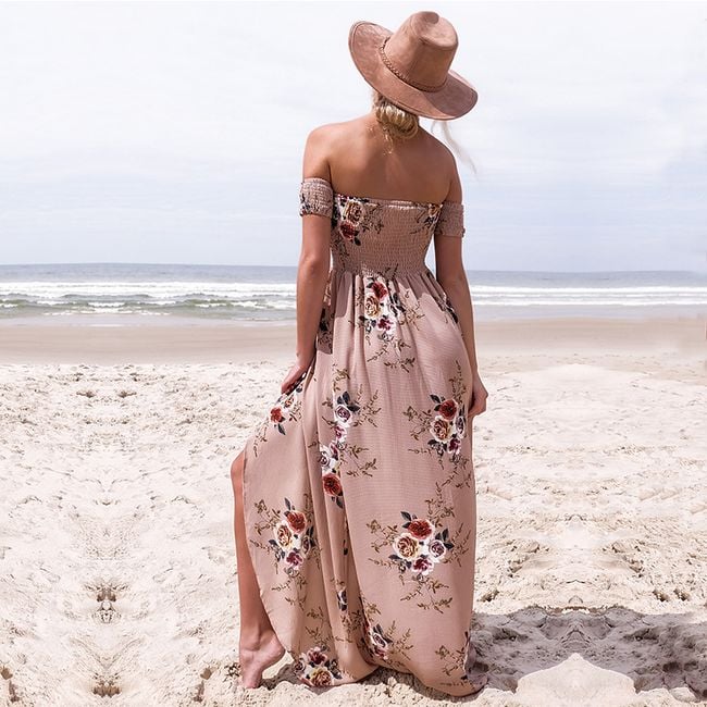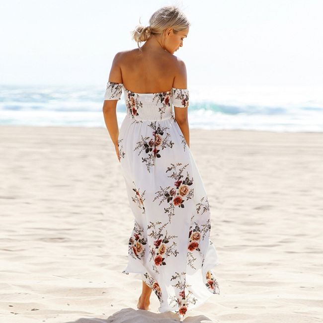 Abito da donna di taglio ampio con maniche scese senza spalline e con un motivo floreale estivo. Disponibile in 3 varianti di colore.