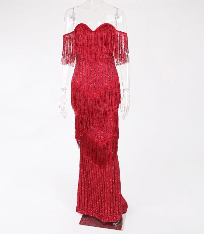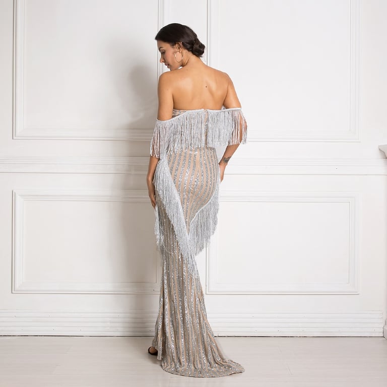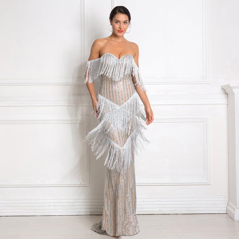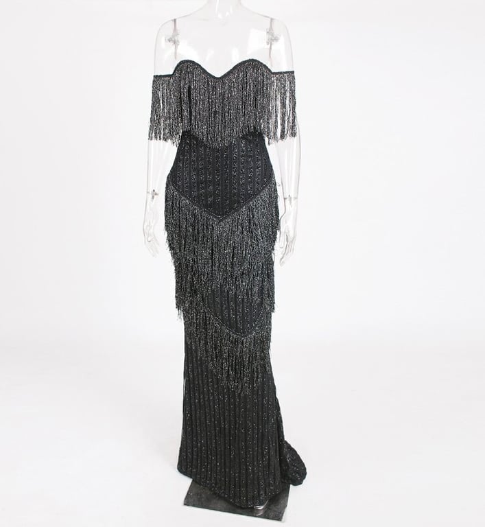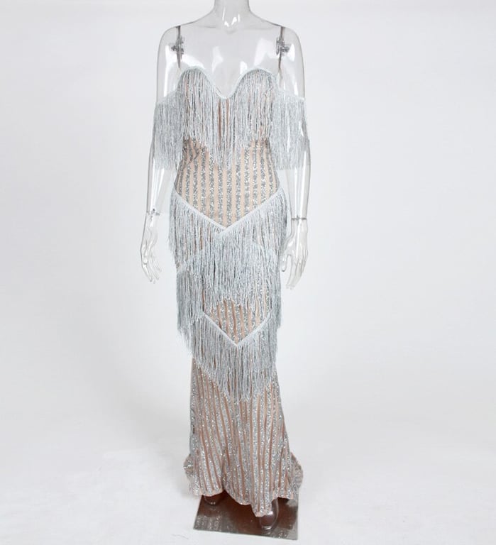 Abito lungo scintillante con frange