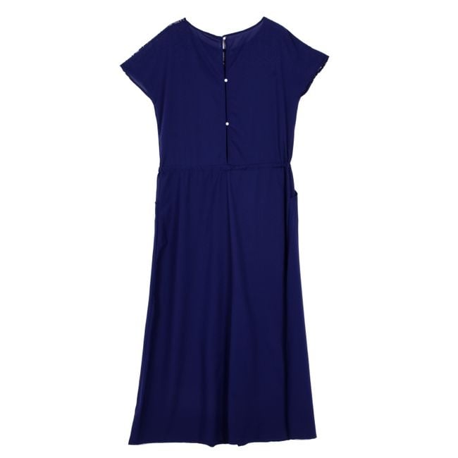 Il vestito è di un blu scuro, molto bello ed è adatto per donne dalle forme generose, mette perfettamente in risalto le vostre qualità e poiché è realizzato in un materiale leggero, vi sentirete sempre fantastiche in qualsiasi condizione atmosferica.
