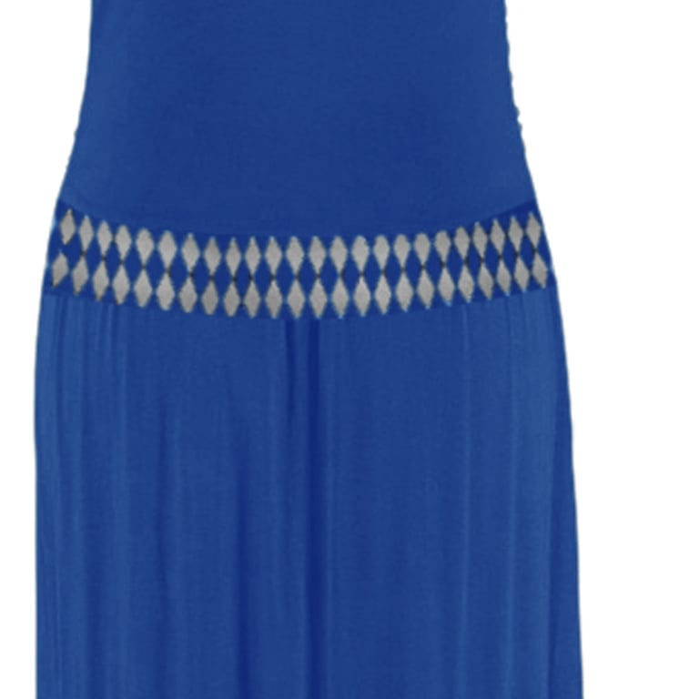 Senza maniche, con una stampa discreta in vita, lunghezza fino alla caviglia.