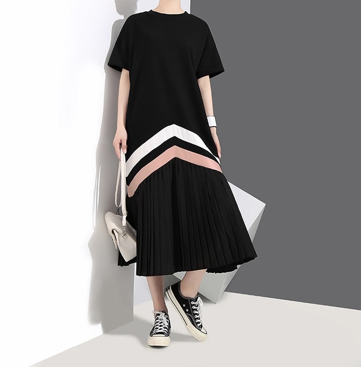 Abito casual comodo sotto il ginocchio con taglio a t-shirt.