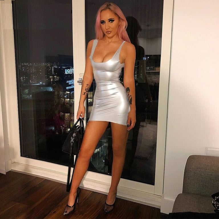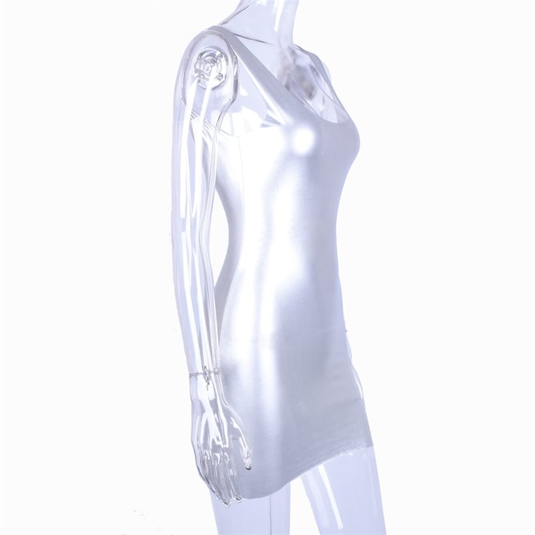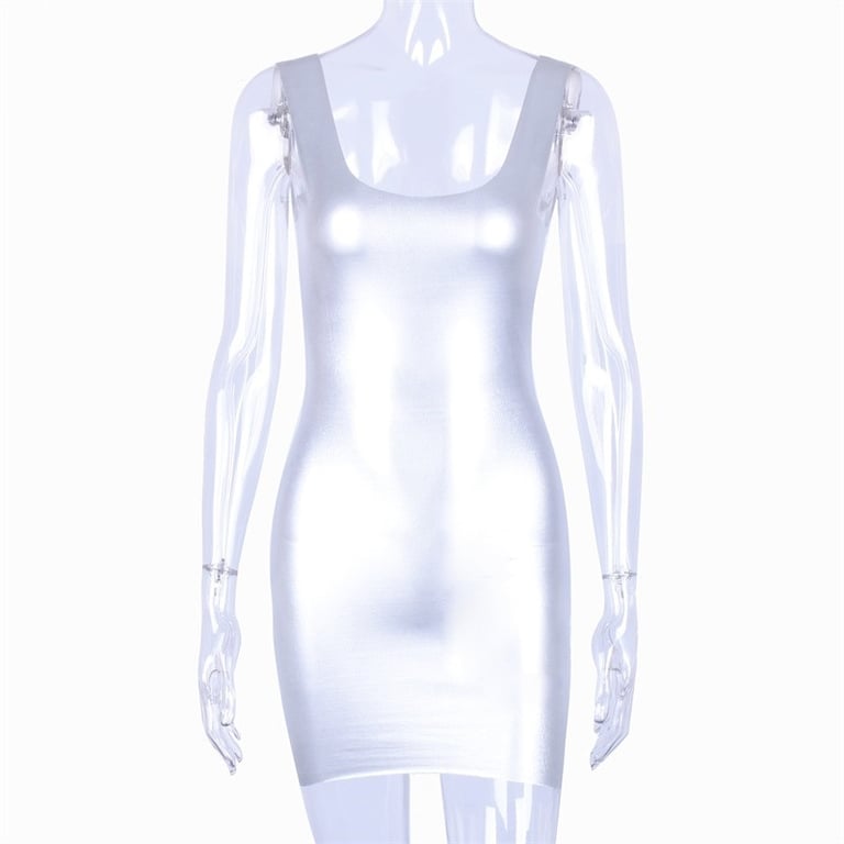 Abito sexy da festa con spalline in materiale elastico lucido.