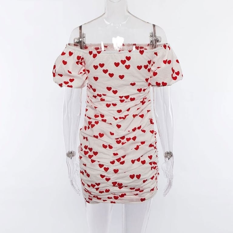 Romantico mini abito con stampa di cuori.
