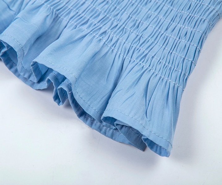 Abito mini elasticizzato con spalline e piccoli volant.