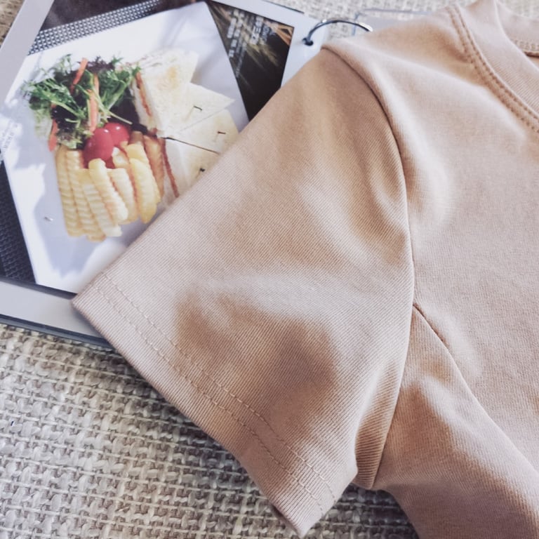 Abito mini da donna in cotone con maniche corte.