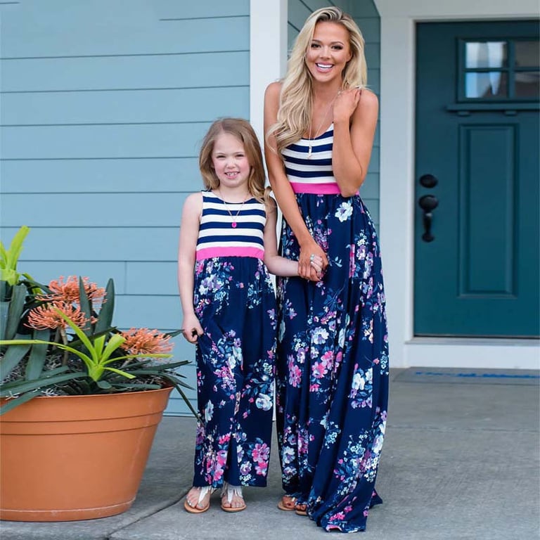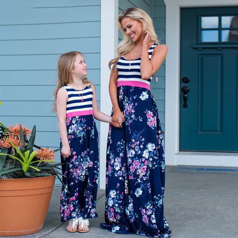 Bellissimi vestiti per mamma e figlia, che saranno perfetti per ogni occasione primaverile o estiva. Apparirete fantastiche e le righe e i fiori vi illumineranno entrambe!