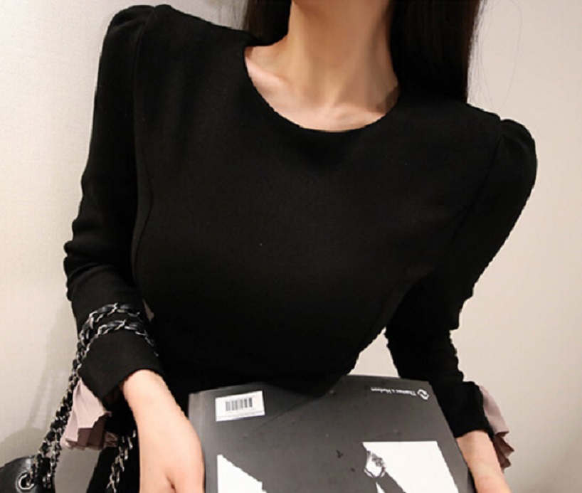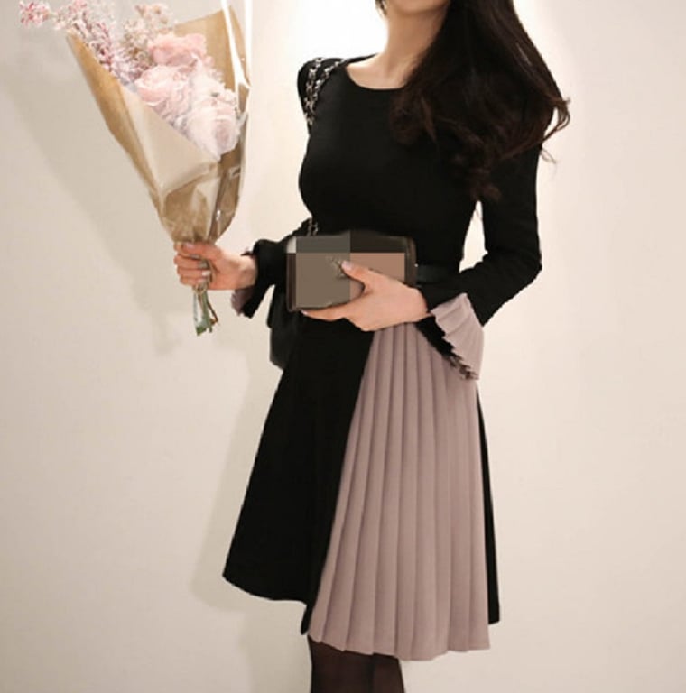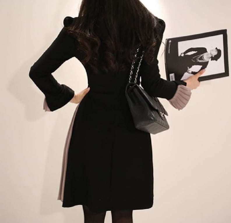 Abito elegante da donna con maniche lunghe e gonna a pieghe.