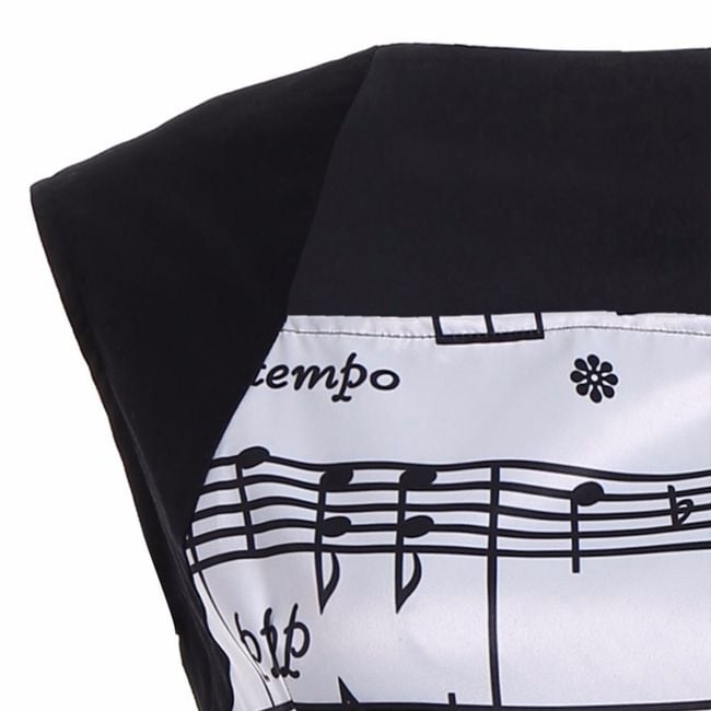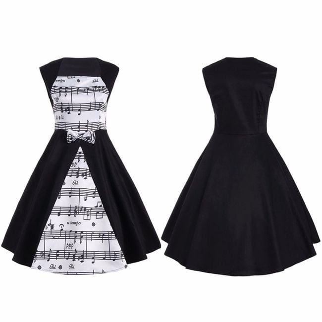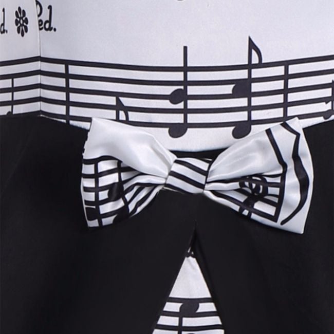 Il vestito ha un motivo di pentagramma ed è decorato con un fiocco.