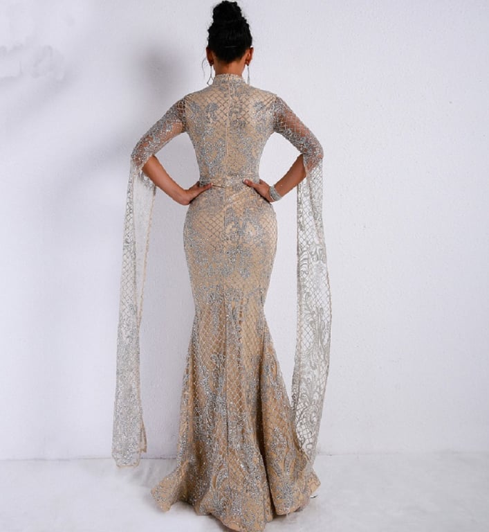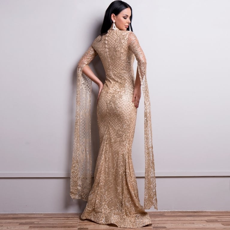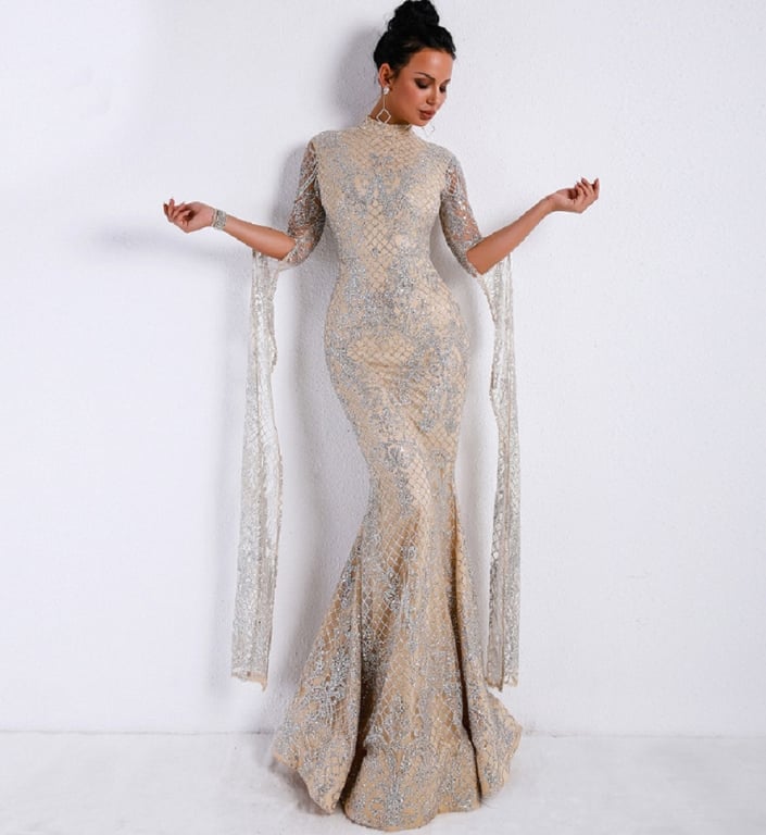Abito scintillante con maniche a campana