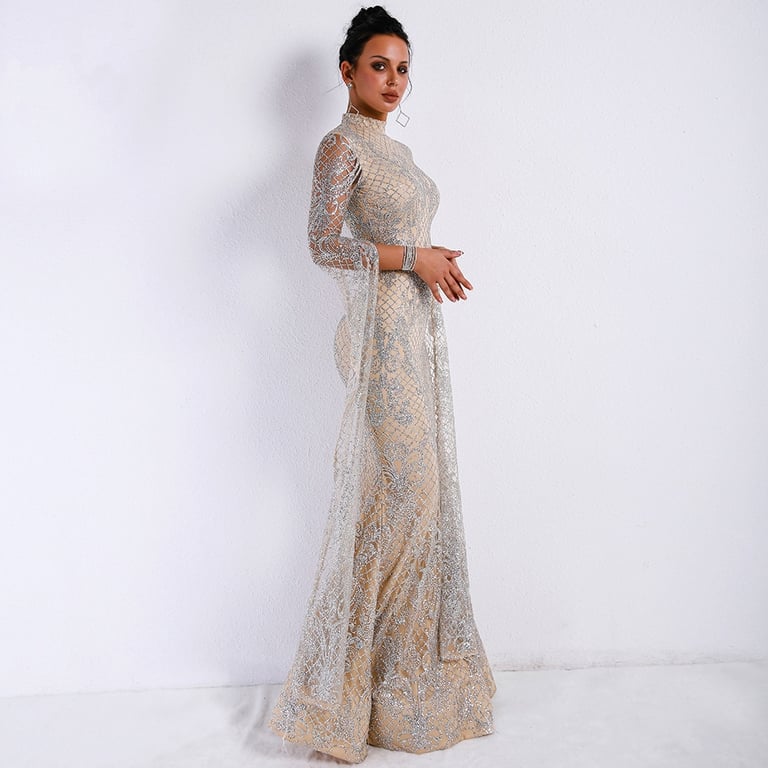 Abito da sera di lusso con motivo di paillettes scintillanti.