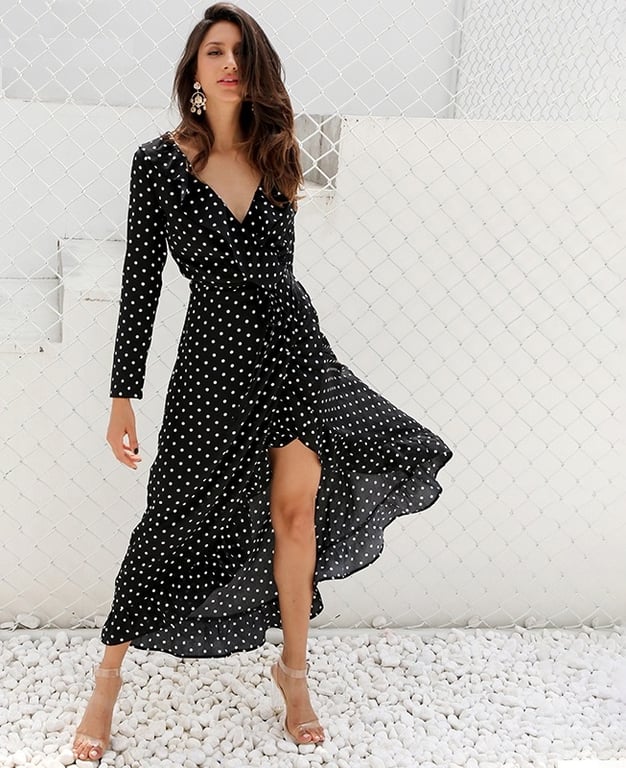 Abito a pois con maniche lunghe - nero