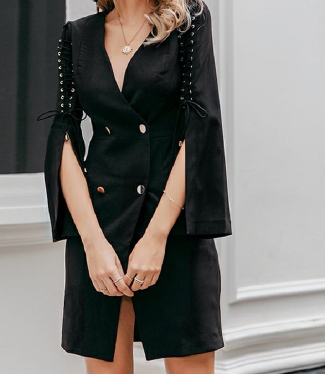 Abito elegante da donna in stile blazer con maniche a sbuffo.