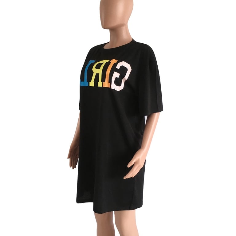 Abito da donna a maglietta di taglio libero con una scritta stilosa.