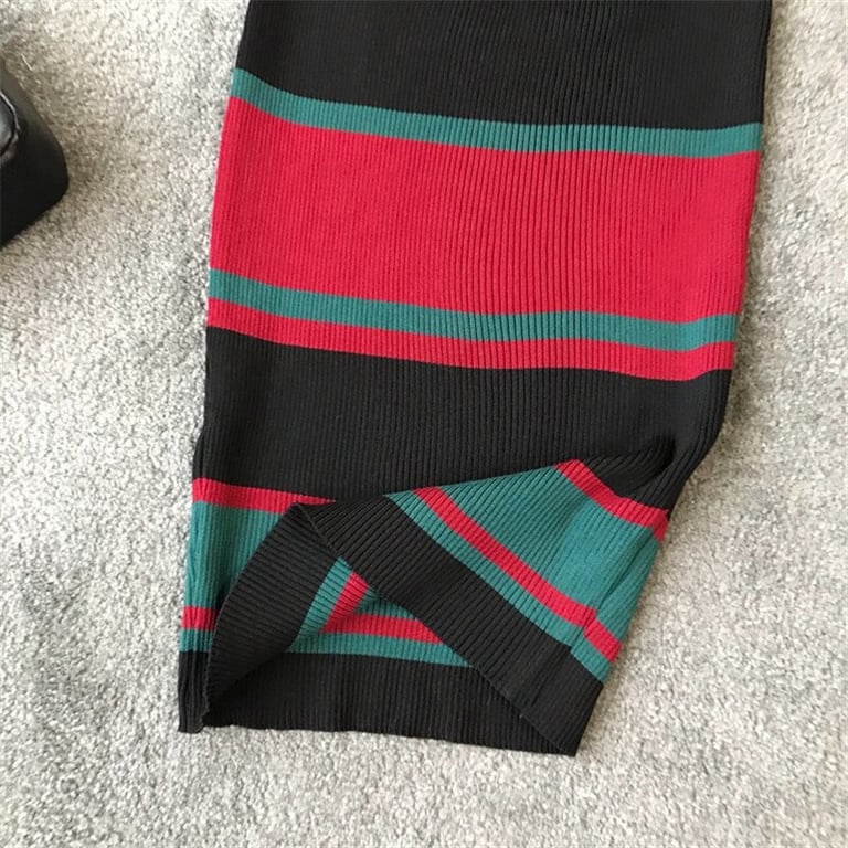 Abito a tubino in maglia con un vivace motivo a righe.