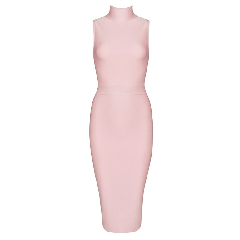 Lunghezza fino al ginocchio. Silhouette liscia dell'abito e colletto alto.