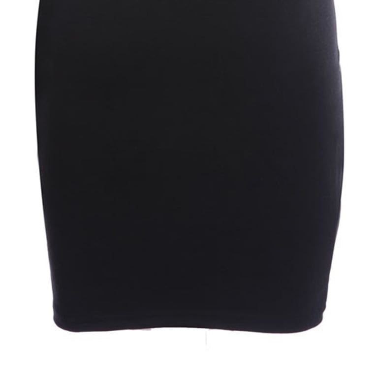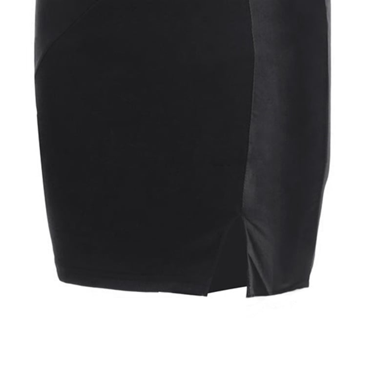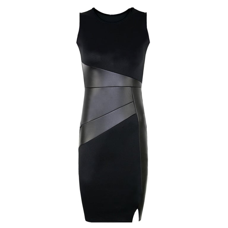 Elegante abito a tubino da donna con inserti in pelle sintetica.