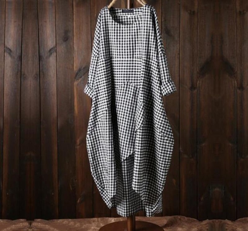 Abito asimmetrico con motivo a quadri
