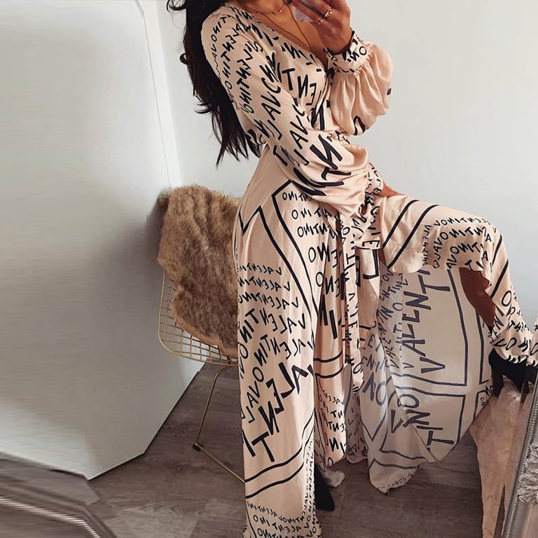 Abito da donna con maniche lunghe e una stampa alla moda!