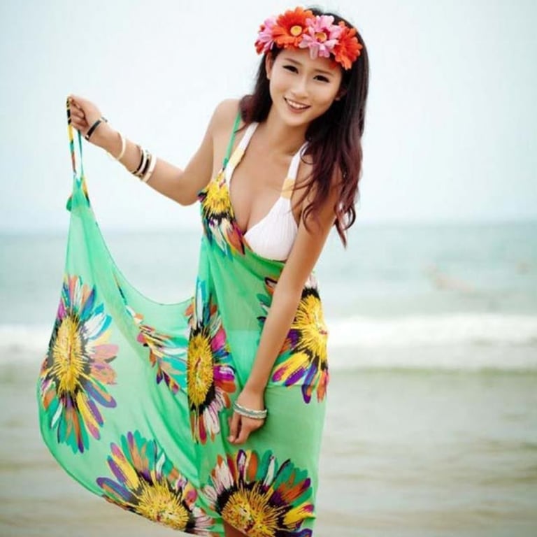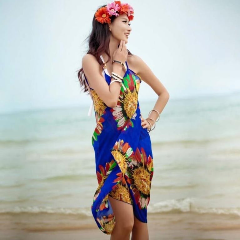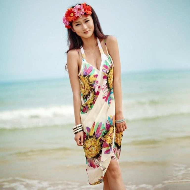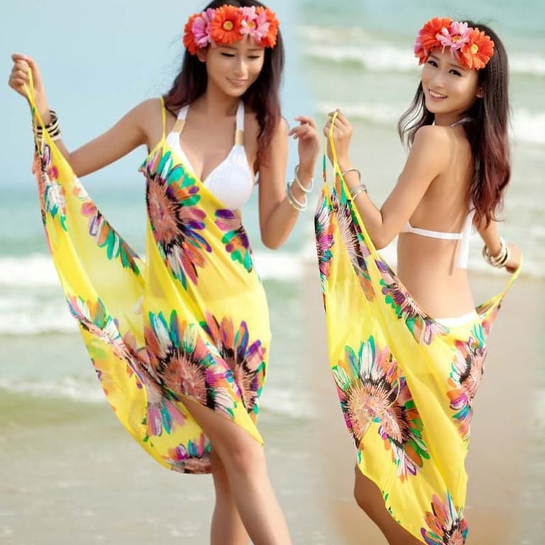 Leggero abito avvolgente da spiaggia. L'abito può essere indossato sopra il costume da bagno. Ideale per una vacanza al mare. Disponibile in diverse colorazioni.