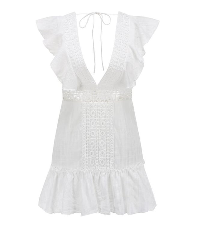 Romantico abito mini con volant e scollatura.