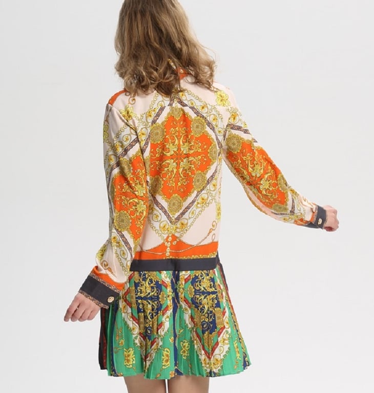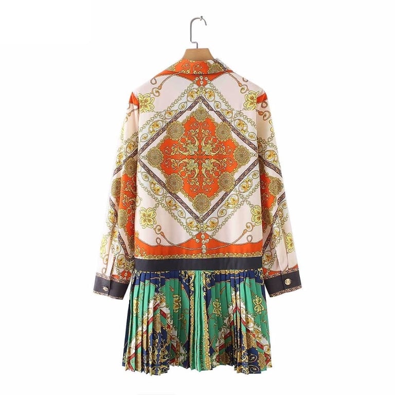 Abito camicia da donna casual con gonna plissettata in stile vintage.
